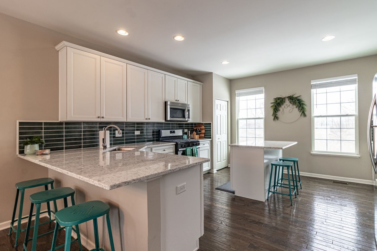 Welcome home to this beautifully updated 3-bedroom, 2.1-bath end-unit townhome in the desirable Gilberts Town Center subdivision! Offering a flexible, open floor plan and an abundance of natural light, this home perfectly blends comfort and style. Step inside to a welcoming tile entry that leads into an oversized living room, ideal for both everyday living and entertaining. A separate dining room with hardwood flooring flows seamlessly into the expanded kitchen-the largest layout available-featuring 42 cabinets, quartz countertops, upgraded appliances, a new backsplash, pantry, and ample workspace for any home chef. Upstairs, the spacious primary suite boasts a tray ceiling, a walk-in closet, and an ensuite. Two additional bedrooms provide plenty of space for family, guests, or a home office. The finished lower level offers a versatile bonus room-perfect for a media room, gym, or office-along with a larger laundry area for added convenience. Additional upgrades include an enhanced banister and railing, adding a modern touch throughout the home. Enjoy outdoor living on the extended deck, ideal for relaxing or entertaining. With its premium end-unit location, thoughtful upgrades, and generous living space, this home is truly move-in ready!